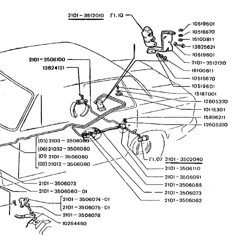 Beim stöbern in der Ersatzteilliste nach den passenden Nummern für den Bremsschlauch, ist mir jedoch noch etwas viel brisanteres aufgefallen. So wie unten dargestellt sollte der Leitungsverlauf im Shiguli sein.