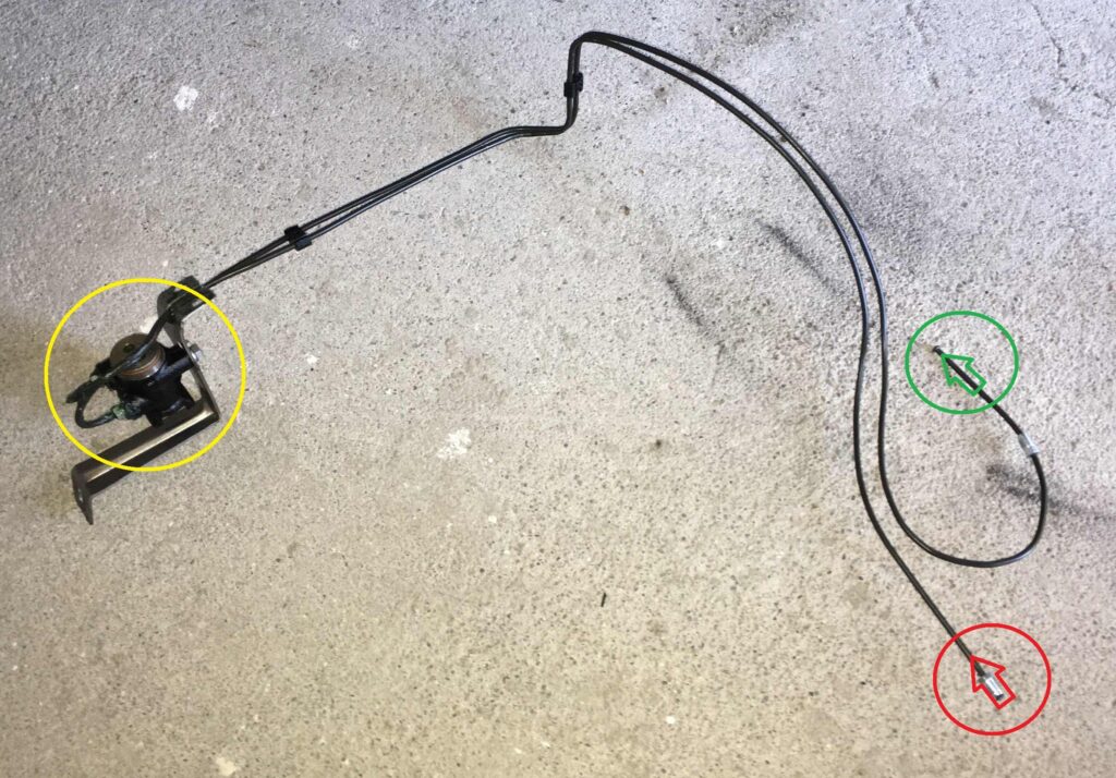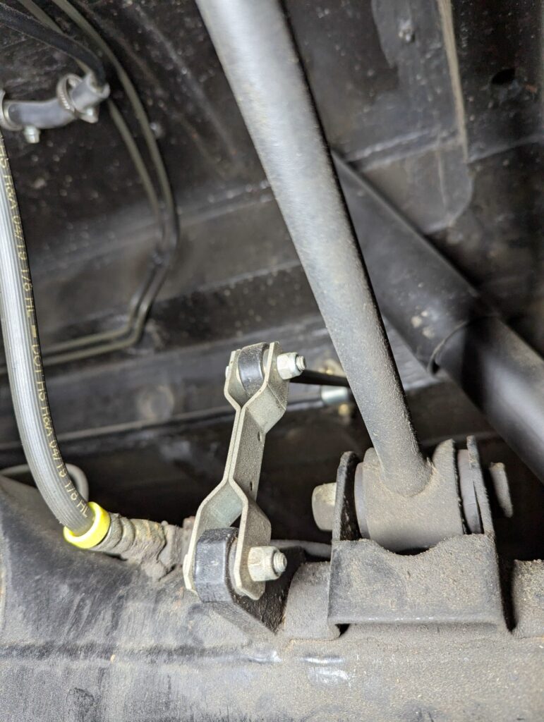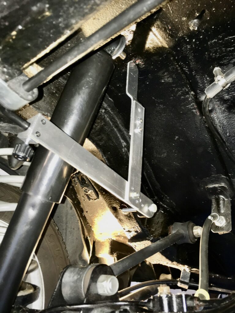 Als nächstes muss das ganze eingestellt werden. Eingestellt wird dabei nicht das Gestänge, sondern die Lage des LAD zum Gestänge. Dafür kann der LAD über Langlöcher im Halter einige Millimeter hin- und her geschwenkt werden. Zum Einstellen habe ich die Bremsleitungen wieder etwas gelöst – mit festen Leitungen hat sich da nahezu nichts wirklich verstellen lassen.